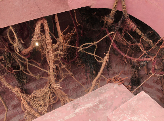 Knotting is my way of language of expression. This site-specific installation transforms a narrow, cave-like passage into a metaphorical space resonating with hidden aspects of nature reclaiming human structures. Utilizing coir rope, my expressive language of knotting narrates the interplay between confined and open spaces,